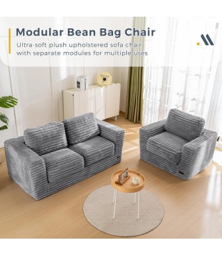 Material: Plush Corduroy Fabric Color: Dark Grey Item Weight: 61.4 Pounds Recommended Uses For Product: Game, Coffee, Read, Sleep, Music