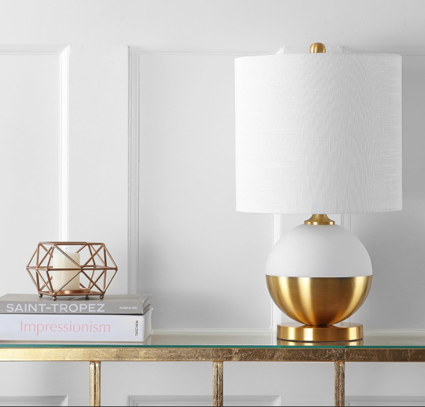 Stylish OT table lamp with brass accents and a cotton drum shade. Includes long-lasting LED bulbs, ETL listed for safety, and compatible with smart outlets. Durable, energy-saving design that brings both elegance and reliability to any room.